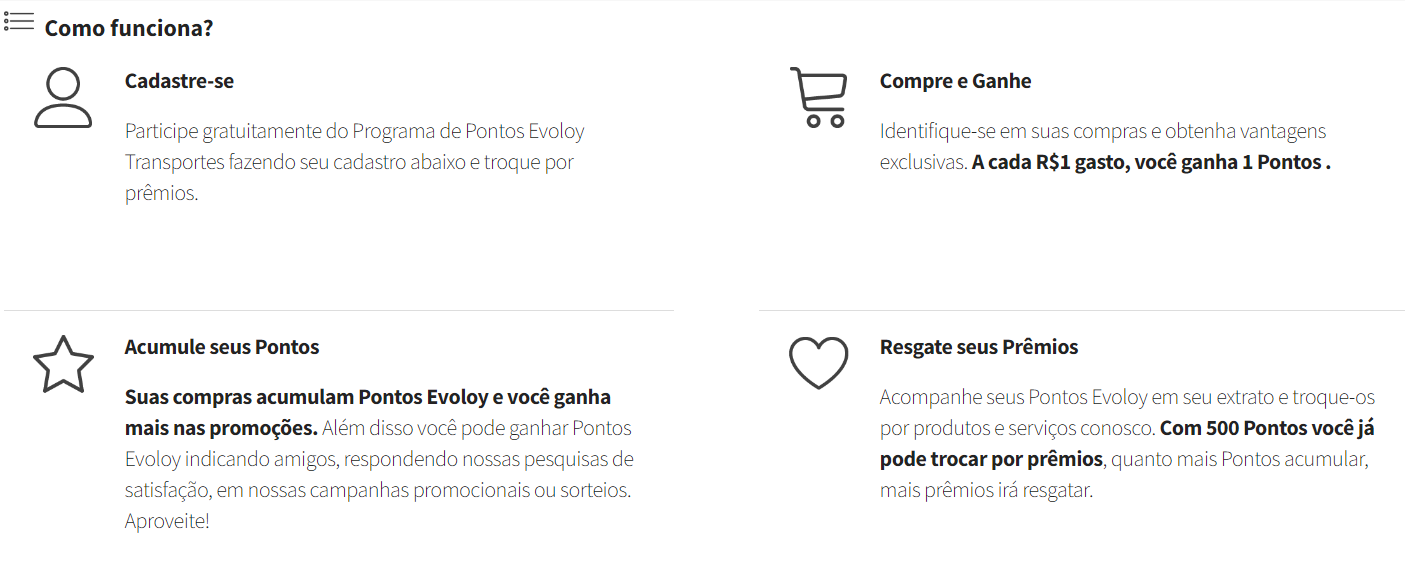 Bem vindos ao Programa de Pontos da Evoloy Transportes.